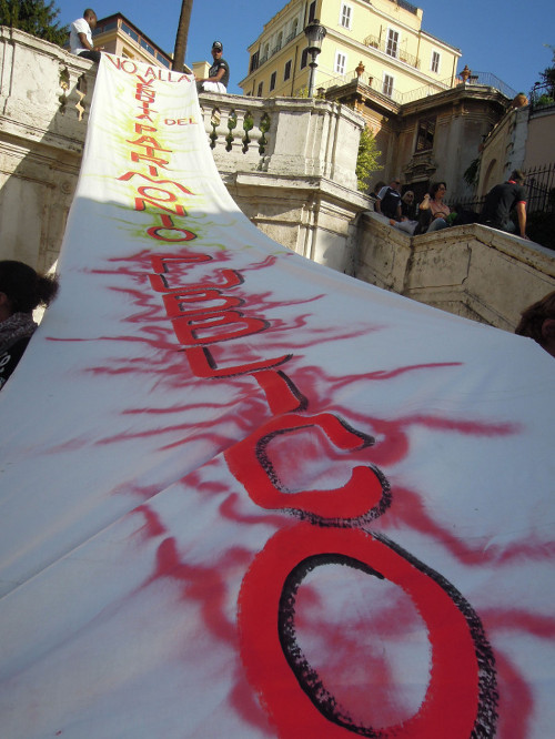 So cities and territories are being transformed, filled with shopping centres and cranes, while many apartments remain unsold (190 thousand in Rome). In these conditions living becomes more and more precarious, while these construction activities do not pay back in terms of employment or quality of life. On the contrary unemployment and job insecurity have increased proportionately with new building activity.